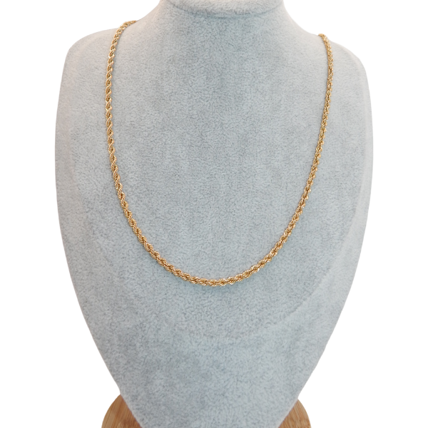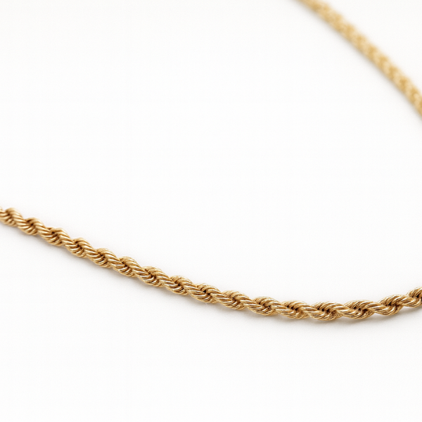 Eleva tu estilo con esta sofisticada cadena torzal, diseñada para quienes buscan un accesorio elegante y versátil. Su acabado impecable y diseño entrelazado la hacen perfecta para usar sola o combinar con otros accesorios, ideal para cualquier ocasión y look.