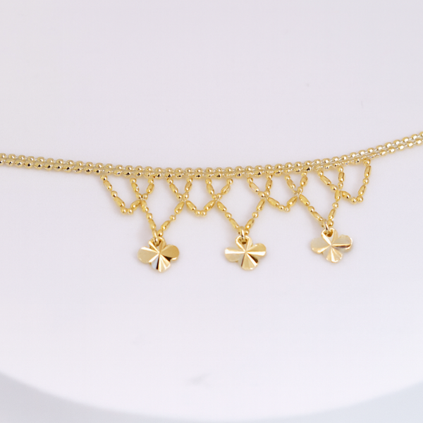 Un diseño delicado y lleno de significado. El collar red tréboles luce una cadena sutil adornada con pequeños tréboles que representan suerte y prosperidad. Su estilo elegante y versátil lo convierte en el accesorio perfecto para llevar todos los días o para complementar un look especial, aportando un brillo encantador y simbólico.