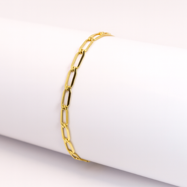 Un clásico que refleja distinción. Esta pulsera inglesa en oro de 10 quilates, con 19 cm de longitud, combina elegancia y resistencia en un diseño atemporal. Su estilo sobrio y versátil la convierte en la pieza perfecta para lucir todos los días o en ocasiones especiales, aportando un brillo discreto y sofisticado.