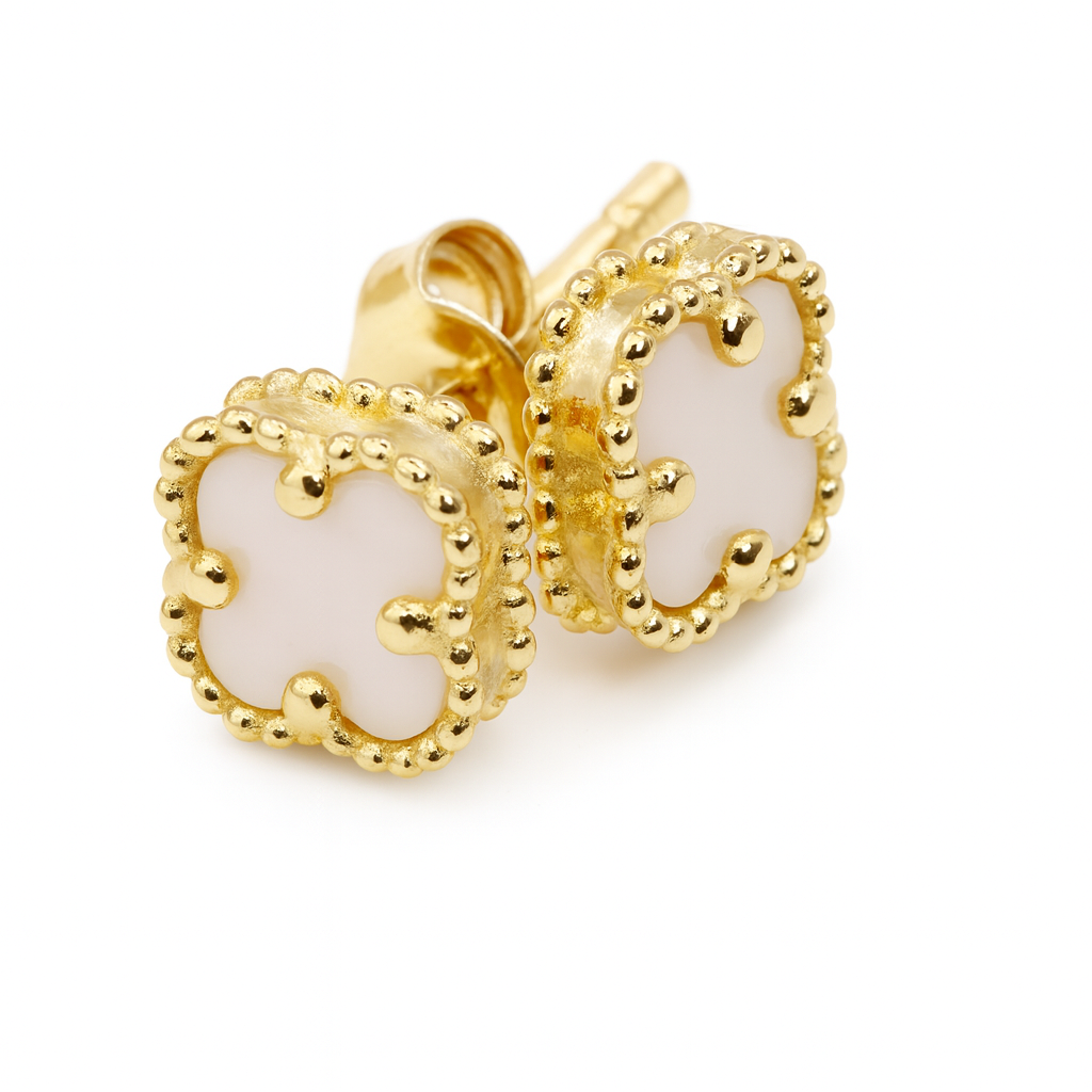 Un toque de elegancia sutil y femenina. Estos aretes en oro de 10 quilates destacan por su delicado diseño en forma de flor con centro de nácar en tono suave, rodeado por un fino marco de cuentas doradas que realzan su brillo. Perfectos para uso diario o para complementar un look sofisticado, son una pieza versátil que transmite dulzura y distinción en cada detalle.